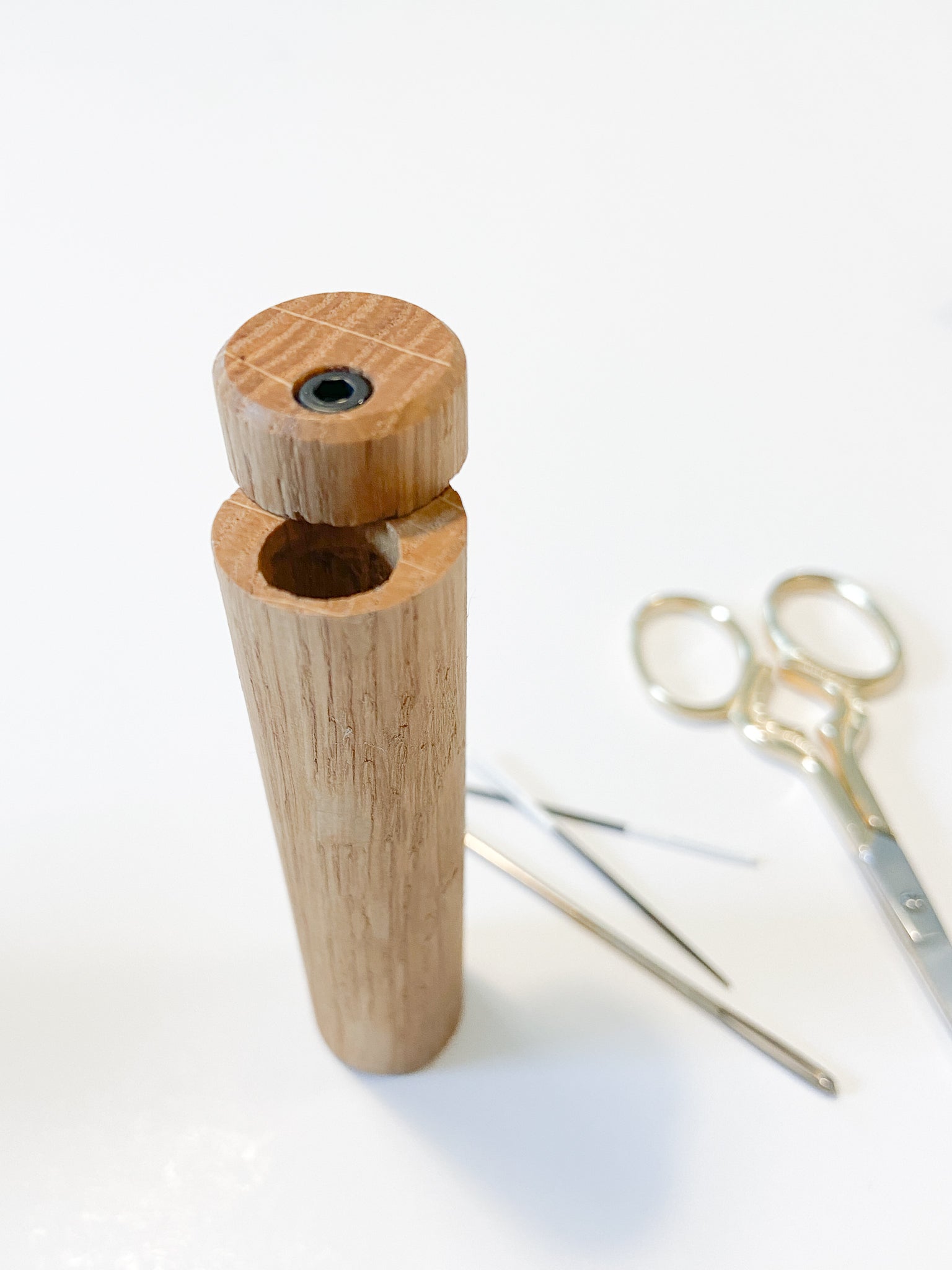Simpelt og smukt nåle-hylster i massiv eg fra finske Succaplokki.