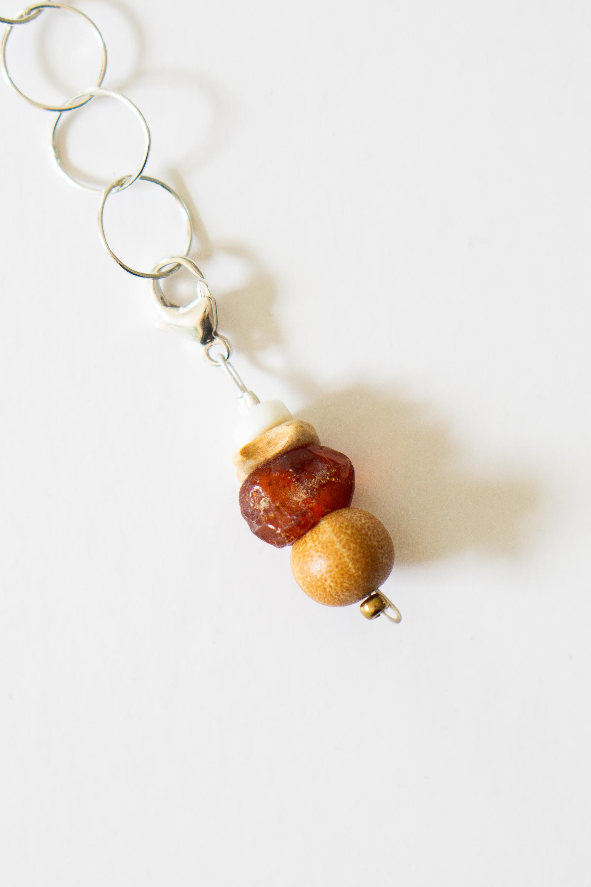 Furiens sølvfisk (som den er døbt) er smukke, lette og helt enkle strikkefisk lavet af ren sterling sølv med et flytbart vedhæng af rav eller halvædelsten fra gamle halskæder.